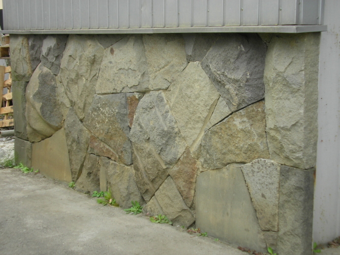 端材を使った石壁